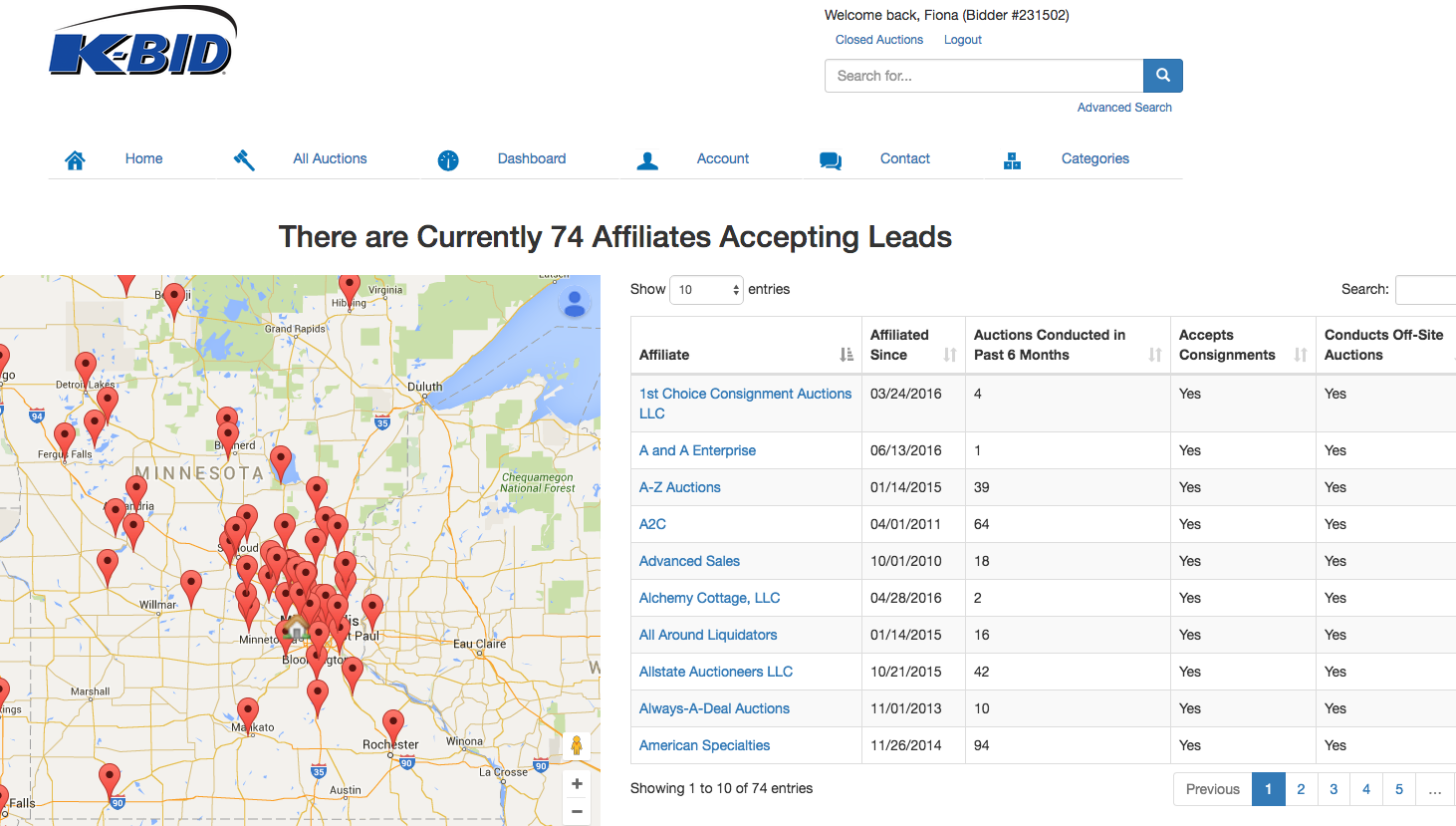 View this link to see an example of an affiliate profile: https://www.k-bid.com/affiliate-profile/detail/2