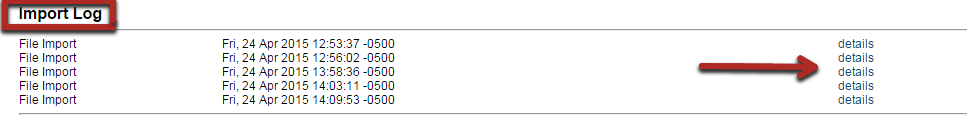 - The Import Log will display each import that you have attempted for that auction and will alert you if there were any errors during your upload. The Details button will give you more information regarding the upload and what/if any errors occurred.