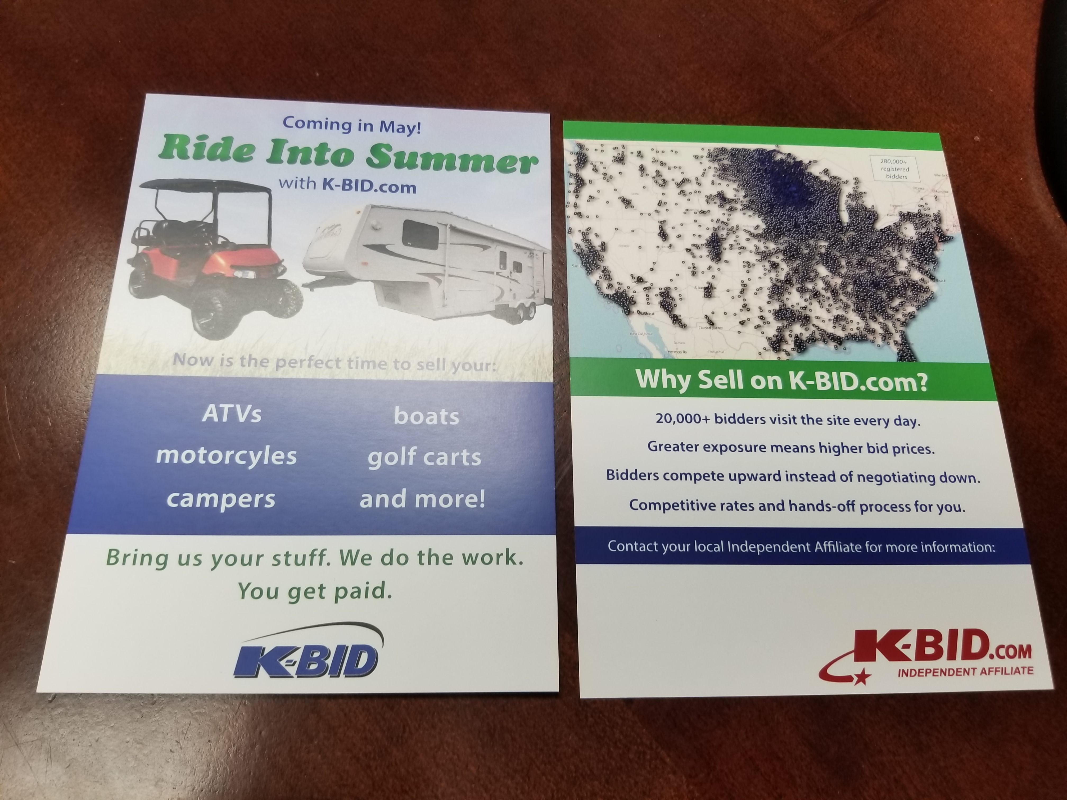 Ride into Summer Postcard - stop by the Maple Plain office or email affiliateservices@k-bidmail.com if you would like us to send you some postcards. Please request how many you would like in batches of 25 and include your correct mailing address!