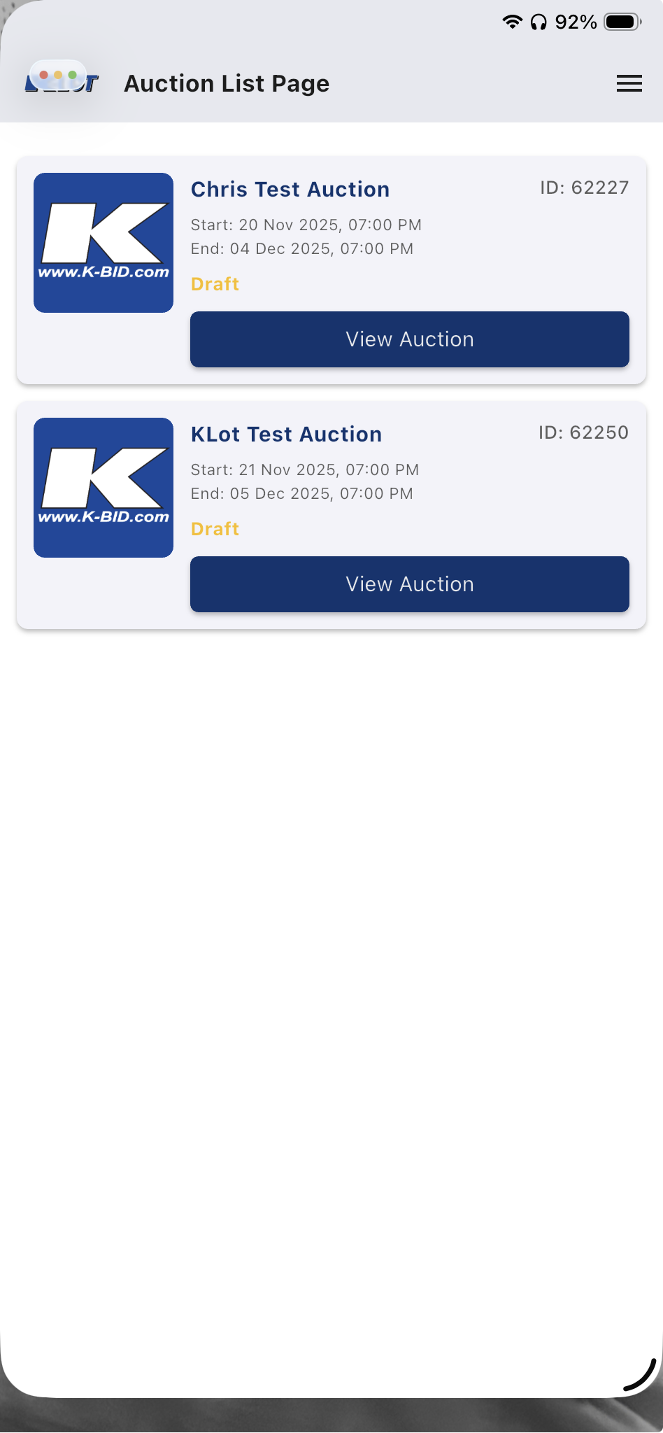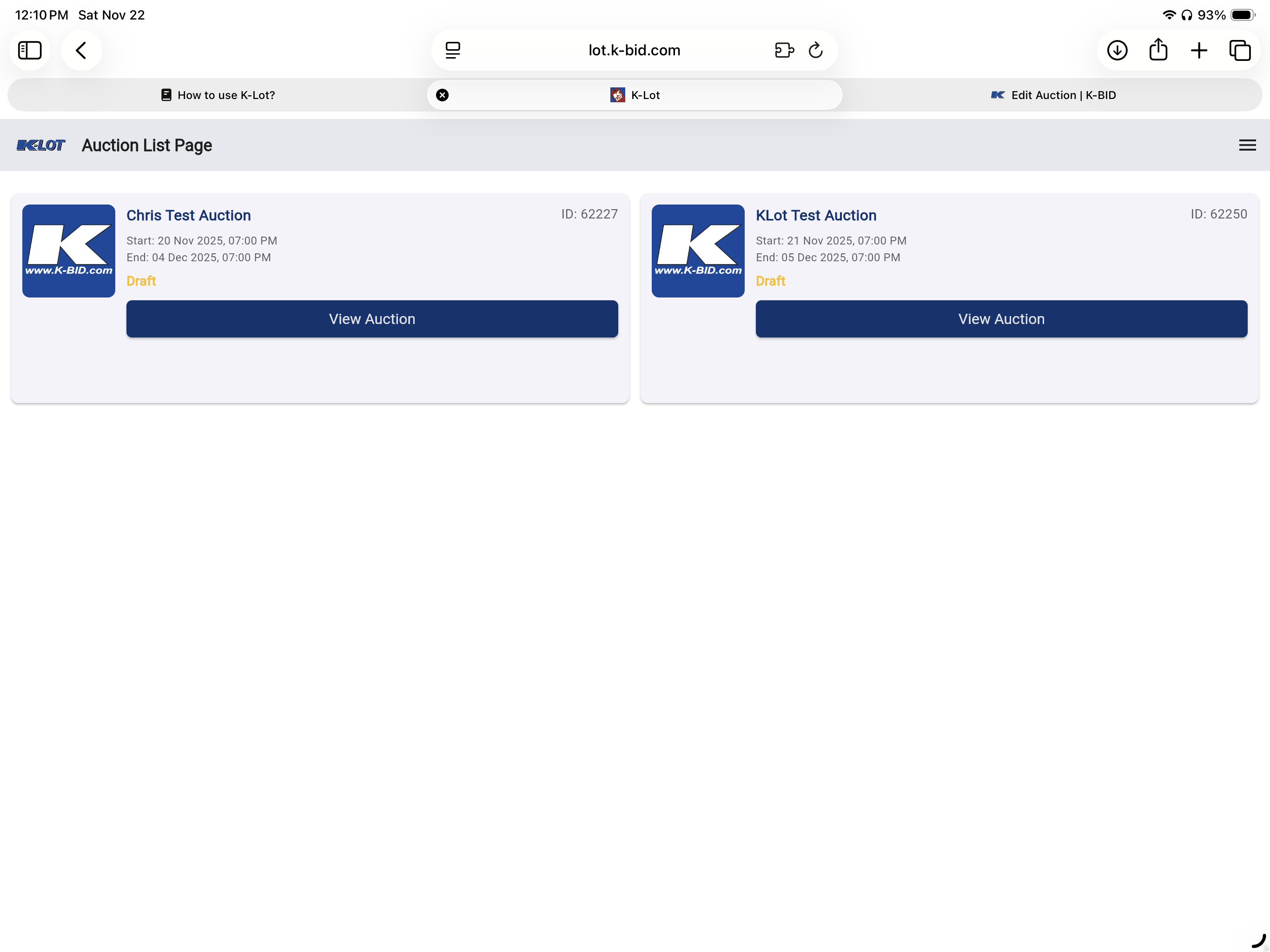 You can get to the web version of K-Lot by going to https://lot.k-bid.com